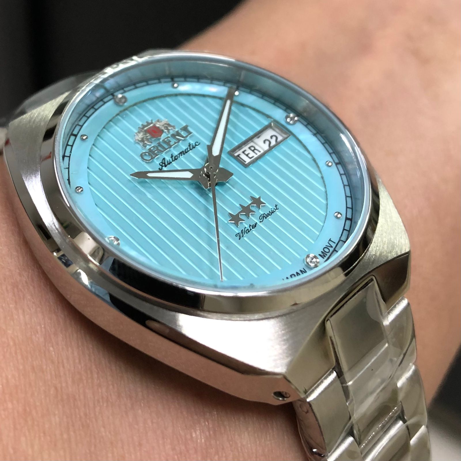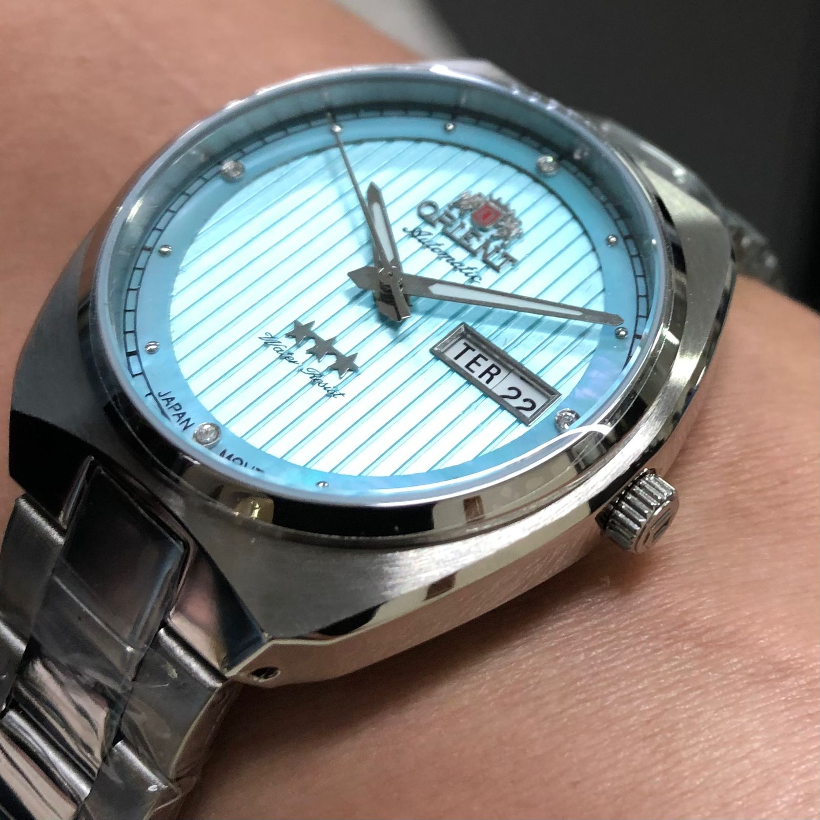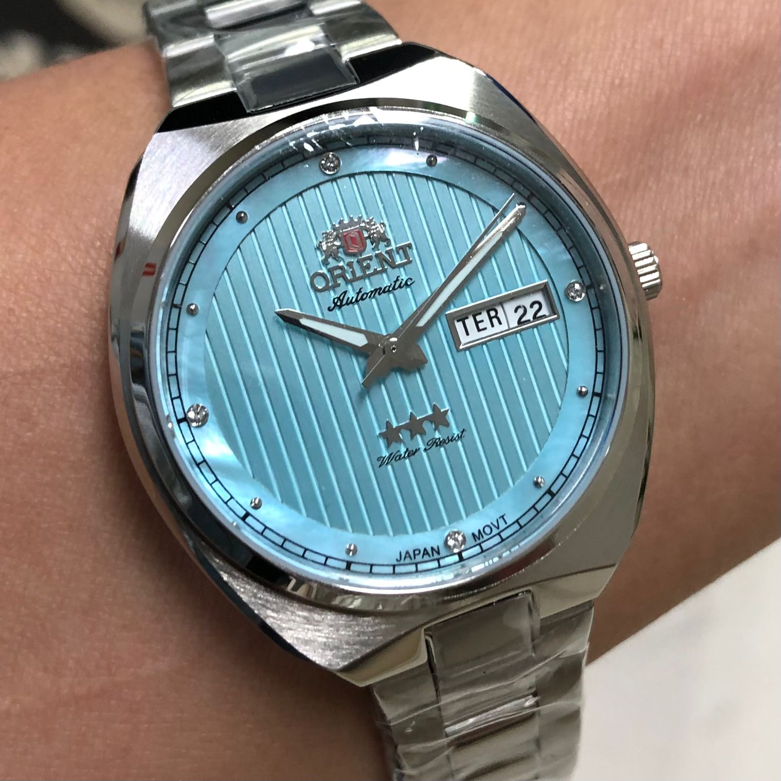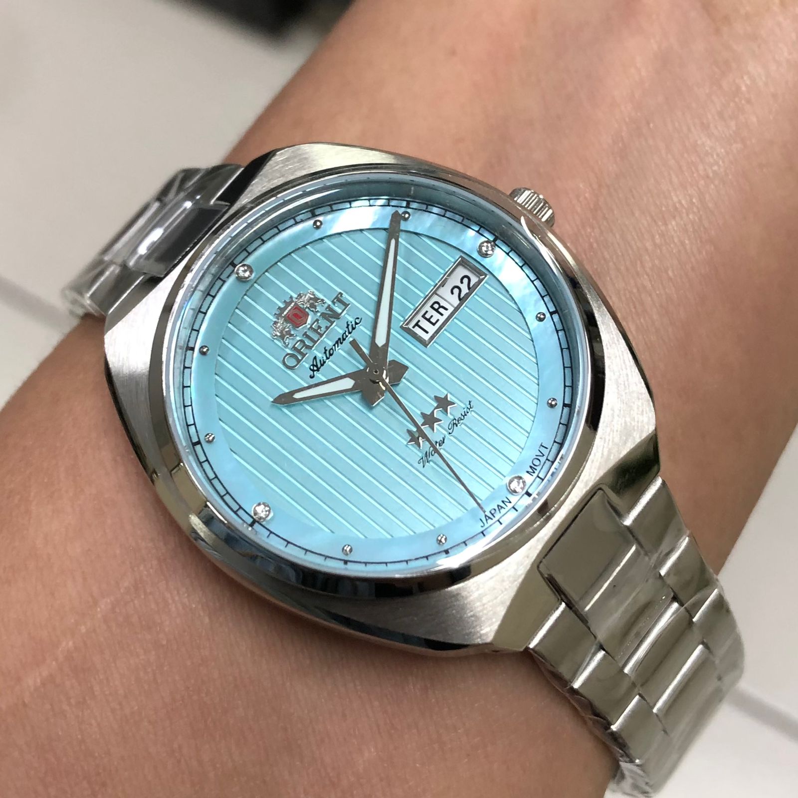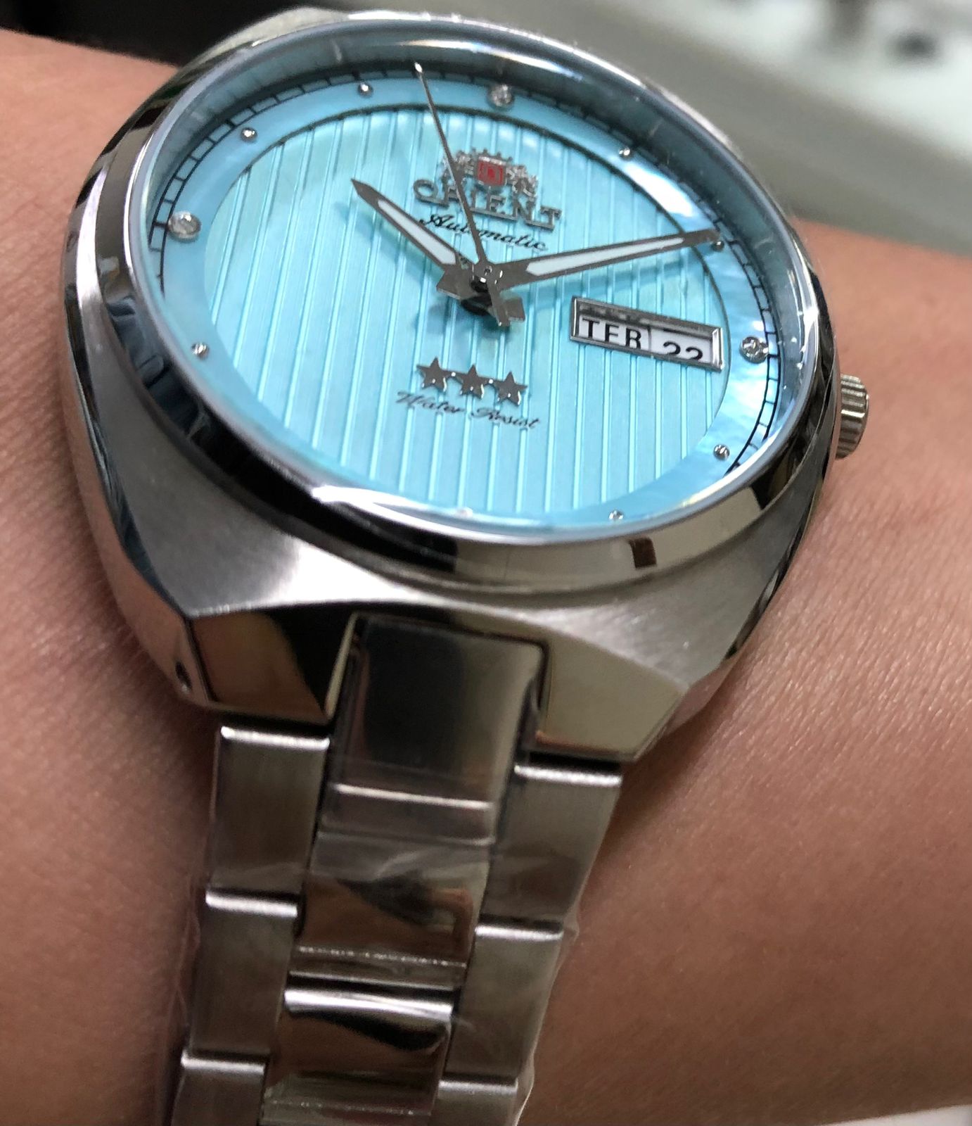 Características: com caixa em aço e pulseira em aço