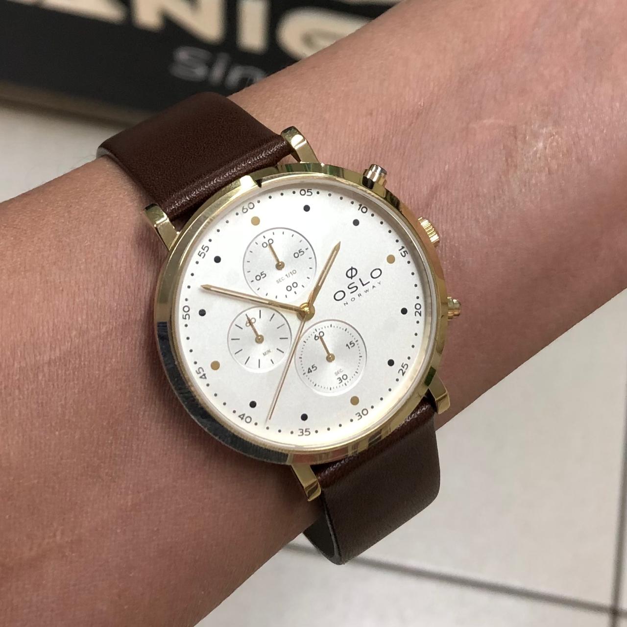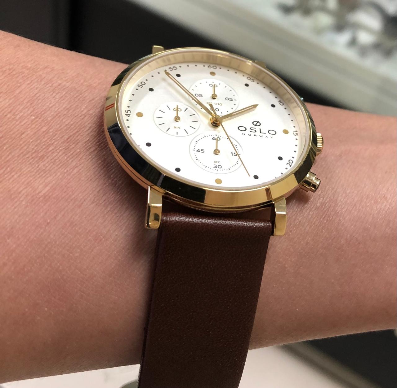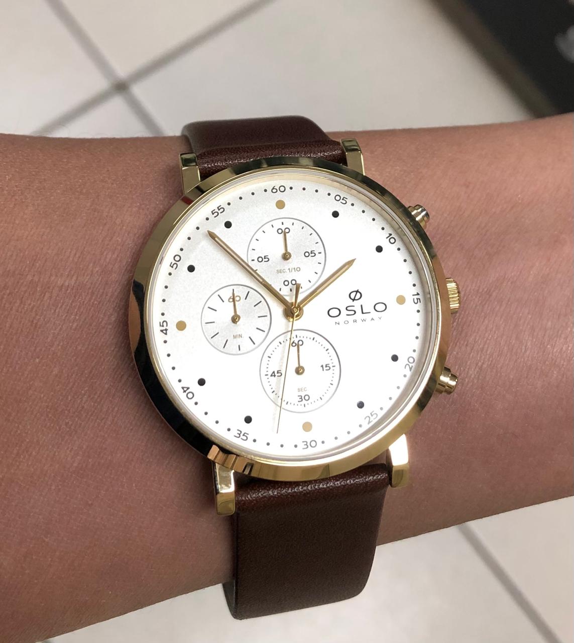 Características: com caixa Aço + IPG e pulseira Couro